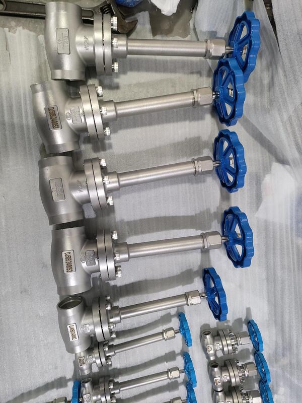 क्रायोजेनिक लॉन्ग स्टेम मैनुअल ग्लोब वाल्व, और तापमान -196°C से +80°C तक होता है यह 3/8'-4' के आकार में आता है और PTFE, CF8 और CF3 सामग्री से बना है। वाल्व लंबे स्टेम डिजाइन में है और क्रायोजेनिक अनुप्रयोगों के लिए उपयुक्त है LNG,LOX,LIN,LAR,CO2